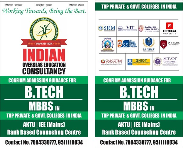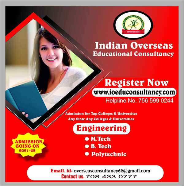 Indian Overseas Educational Counselling CentreIOEC Consultancy is one of the leading education consultants ISO 9001:2015 since 2005, With Network all over the India and Abroad also; it Helps the Students to Pursue all Type of Higher Education in India and Abroad. We offering Educational Professionalism From Different States to the Aspiring Students in India at a very reasonnable cost and convenience. IOEC Educational Consultancy with a team of highly Professional and much Experience Employees Provided Professional Consulting services to students in India who like to Pursue in all type of Professional Courses in lndia and study MBBS abored Countries like Canada, Russia, China, Philippines and Ukren. IOEC Consultancy Shows you a Right Way to a Bright Future, We believes in Long Lasting Relation with Students and it Measures its Success In Terms Of Success Achieved by Students Placed in Top Leading Companies. We believes in deep bonding with the students community.IOEC Consultancy assist its students and their parents with inclusive information, So they can take an update decision. Why IOEC INDIAN OVERSEAS EDUCATIONAL CONSULTANCY in India's Leading Educational Consultancy in India Higher Education, We Assisting In Getting a Wide Range of Globally Recognized Courses which helps in Getting Professional Educations. Since Its Founding in 2005, We have Continued to Expand our Network With Haed Office at Varanasi & Channel Patner are Bihar and jharkhand. We Offer Free Counseling to Students Aspiring to Study Professional Courses Like B.Tech/B.E, MBBS, MD/MS, BDS, BAMS, PHARMACY, LLB & All Professional Coures.we Specialize In Providing Admission Guidance Regrading All Types Of Professional Courses. We Are The Official Representative Of Different Colleges & Universities of India & Abroad.We Consult and Guide the Students in the Best Possible way. With All the Experience, we are always with them all through the way till they are satisfied. For Us "Education is the foundation upon which we build our future".